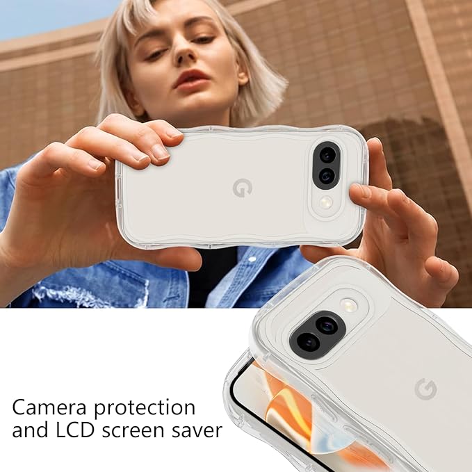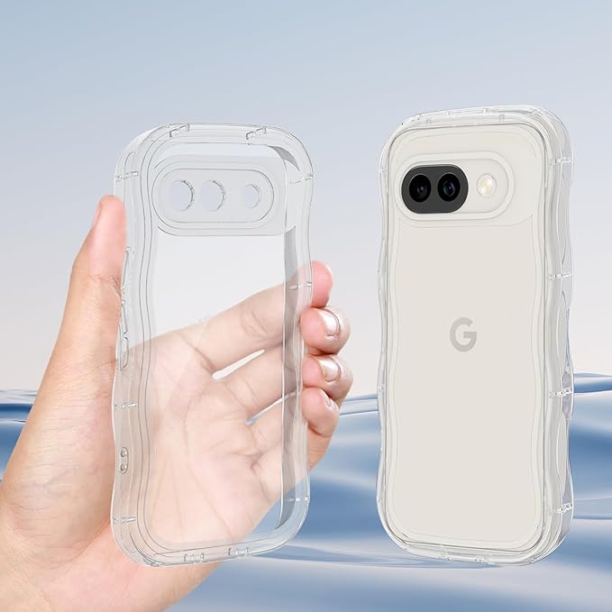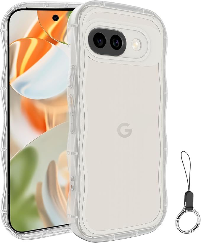 Google Pixel 9A ケース クリア ウェーブ ピクセル 9A TPU波状のバンパー 透明 スマホケース かわいい うねうね グーグル ピクセル9A ウェーブ デザイン 可愛い 韓国 薄型 人気 おしゃれ 耐衝撃 黄ばみなし グーグルピクセル9A ストラップホール付き(Pixel 9A-純透明)