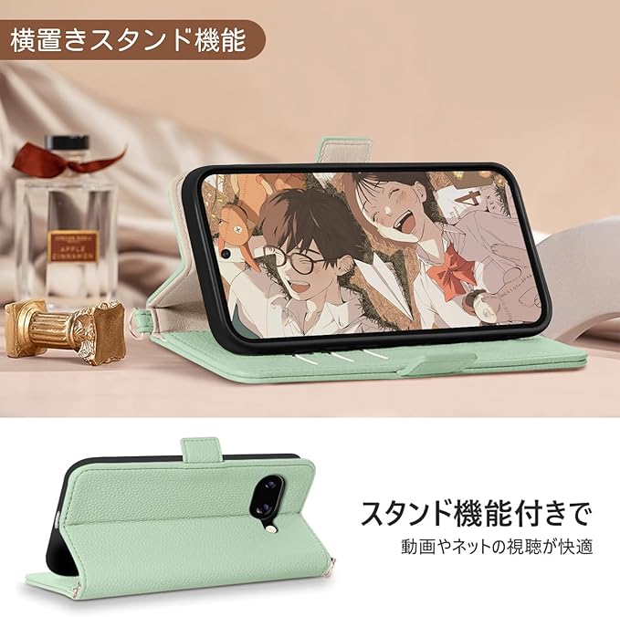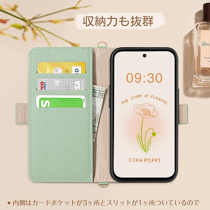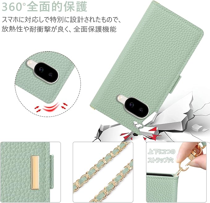 CASSYOOK google pixel 9a ケース グーグルピクセル9a 手帳型 財布型 カバー カードポケット付き ぐーくるぴくせる9a ケース 手帳型 ショルダー 全面保護 耐衝撃 googleピクセル9a ケース 手帳型 カード収納 横置きスタンド機能 高級PUレザー おしゃれ 上質な手触り 擦り傷防止(グリーン)