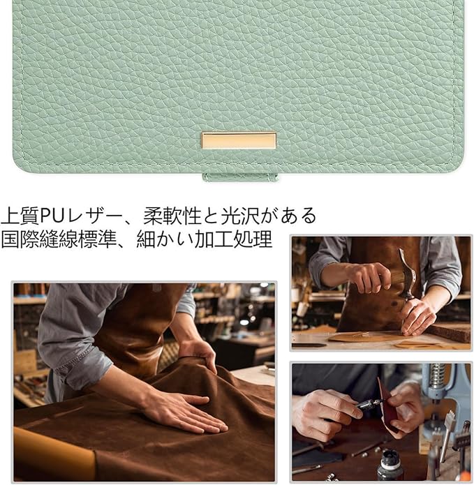 【カード収納&スタンド機能】①ブック型ケースとして、内側には三つのカード入れとフリーポケットがつき、ショップでのポイントカード、交通機関でのスムーズな移動をサポートでき、 SUICA / PASMO / ポイントカード / メモ 等収納でき、ちょっととしたお出かけてもこれで十分です。②機