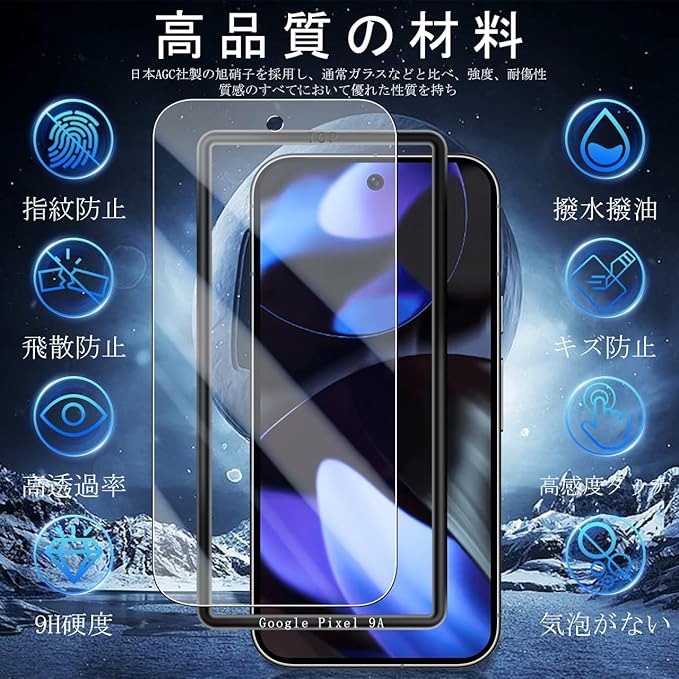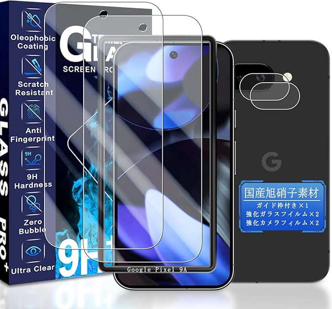 JCJCLY 対応 Google Pixel 9A ガラスフィルム 6.3インチ【2枚強化ガラス+2枚カメラフィルム セット】国産旭硝子素材製 Pixel9a 保護 フィルム ( 2枚)+ ピクセル9a レンズフィルム ( 2枚)「硬度9H 耐衝撃 飛散防止 衝撃吸収 厚さ0.26mm超薄型 高透過率 高感度 ラウンドエッジ加工 超高質感 指紋防止 貼り付け簡単 自動吸着 気泡ゼロ 」JCGP9A22K