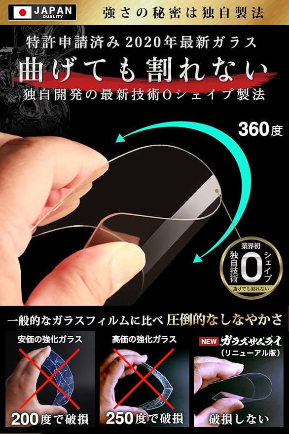 ガラスザムライ AQUOS R2 用 ガラスフィルム SH-03K 用 SHV42 用 706SH 用 硬度 10H 強化ガラス 保護フィルム 米軍MIL規格 191-k