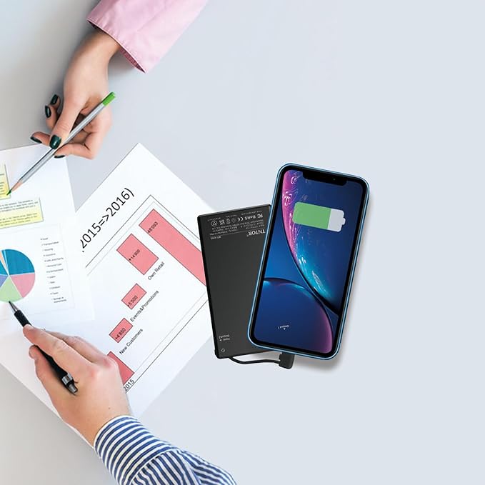 TNTOR モバイルバッテリー 軽量 小型 超薄 6.8mm 5000mAh ケーブル内蔵 iPhone対応 iPhone 14/13/13 Pro Max/12/11/XS Max/XR/X/8/7/6/Plus Airpods対応 スマホ充電器 持ち運び便利 地震/災害/旅行/出張用【PSE認証済】