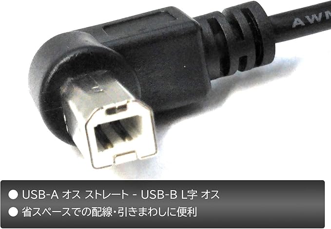 オーディオファン USB-TypeB ケーブル プリンターとの接続、電子工作に USB-A-USB-B L字 USB2.0 短い 30cm ブラック