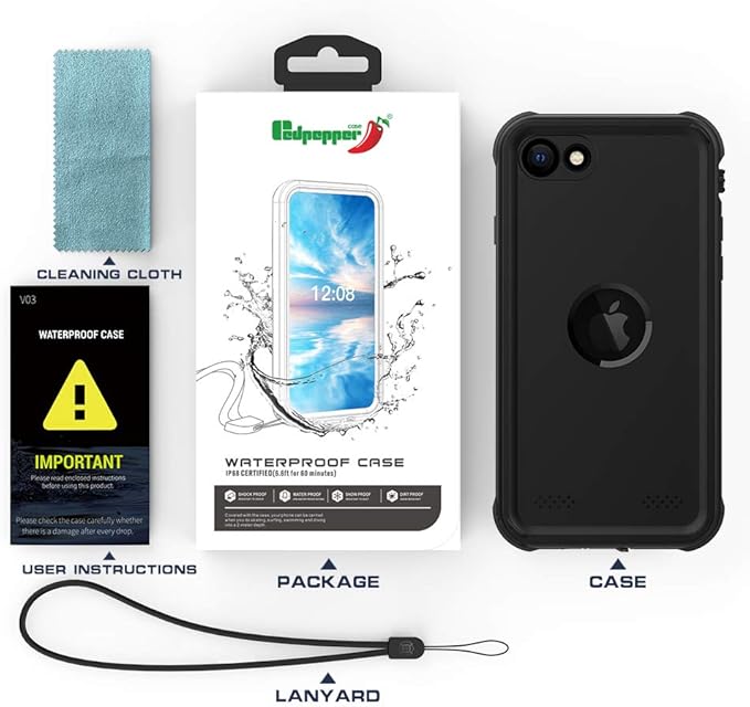 iPhone SE 第2世代 第3世代 防水ケース DINGXIN iPhone SE2 SE3 指紋認証対応 防水 防雪 防塵 耐震 耐衝撃 IP68防水規格 アイフォンse 2020 2022 防水ケース ストラップホール付き ワイヤレス充電対応