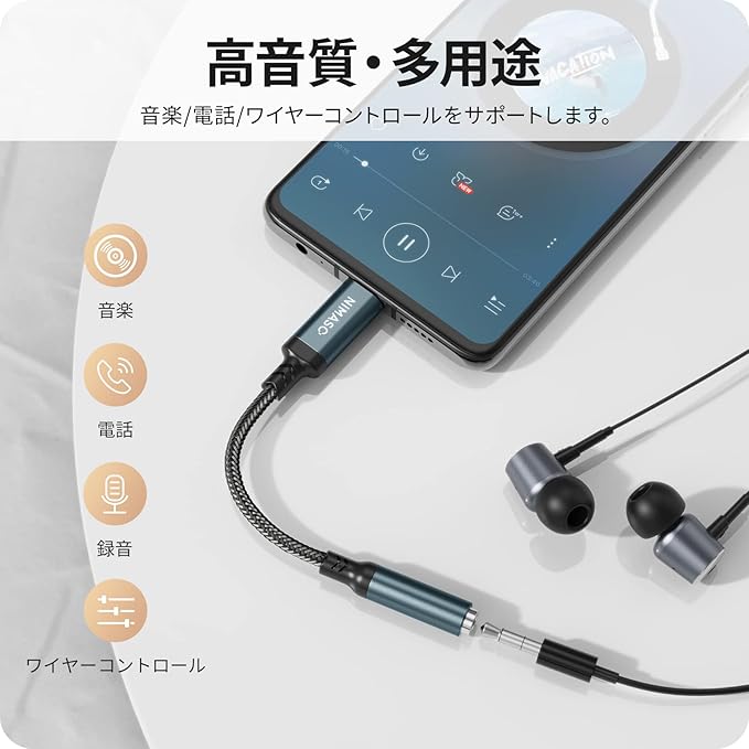 NIMASO type-c イヤホン 変換 タイプc イヤホンアダプタ 3.5mm Aux usb-cオーディジャック 電話/音量調節/音楽対応 iphone16 /15/iPad/iPad Pro/Android/typec機器に適用 NAD22A441