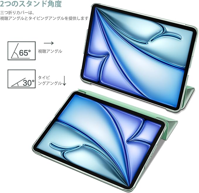 ProCase iPad Air 11インチ ケース M3 (2025) / M2 (2024) / iPad Air 第5世代 / 第4世代 軽量 スタンド 三つ折り フォリオ保護ケース 半透明バックカバー Apple Pencil 2対応 対応端末:iPad air 11インチ M3 (2025)、M2 (2024)、iPad Air5 2022、Air4 2020 - グリーン