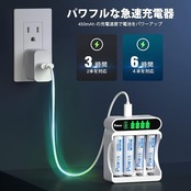 【LCDパネル付き】スマートなLCDパネルが搭載されています。各スロットが独立して、正確的に各電池の充電状 況をLCDディスプレーで表示します。単三電池と単四電池を1本ずつ判別して制御するセンシング充電機能があります。異常な電池をLCDでお知らせします。
