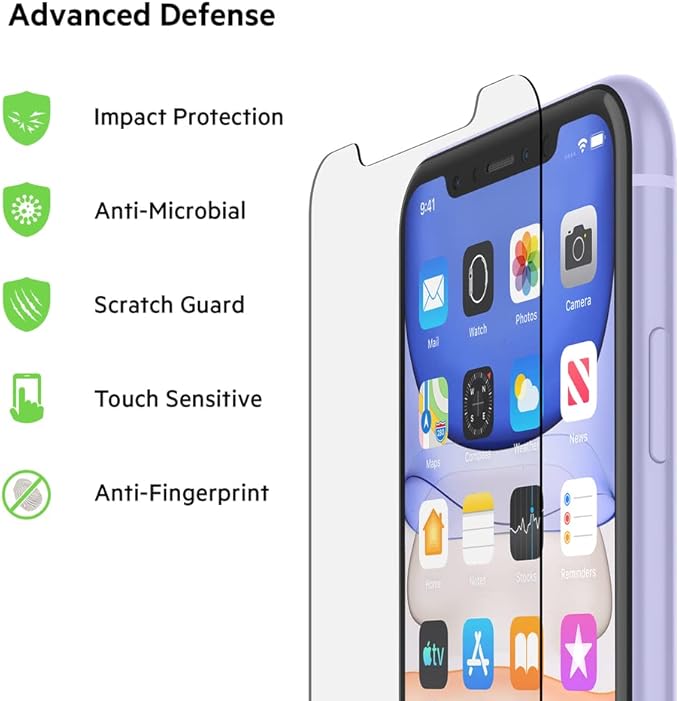 Belkin iPhone 11/XR用 保護ガラスフィルム 超強化ガラス(TemperedGlass) 指紋防止 超薄型0.33mm 簡単取付トレイ付き F8W948zz-AM