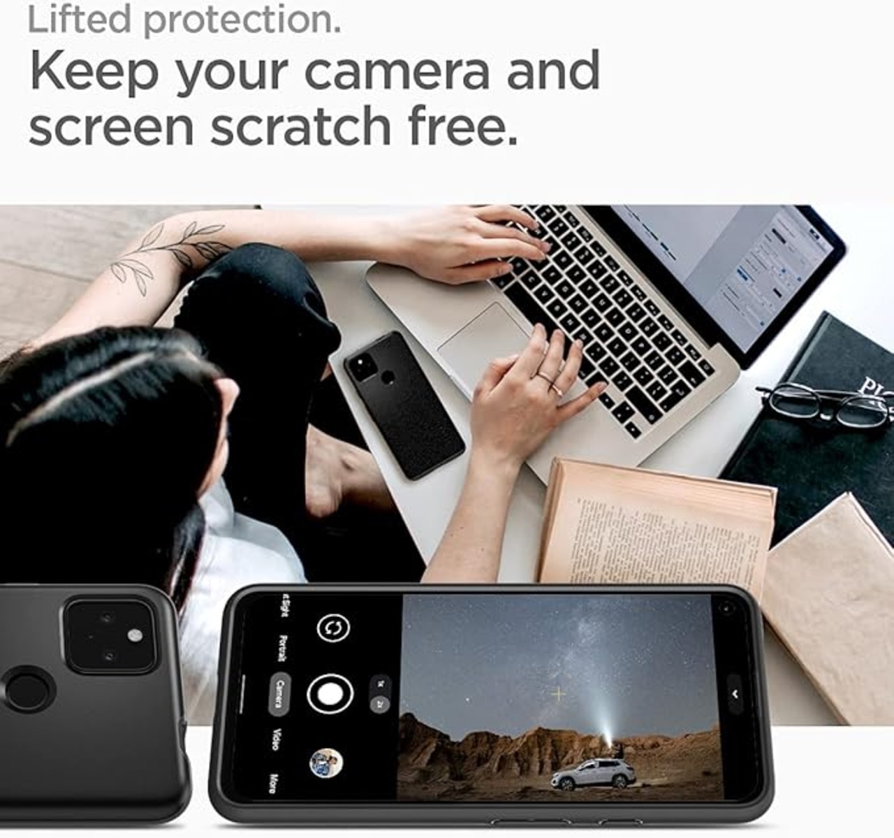 Spigen Pixel 5a 5G ケース 対応 超極薄 レンズ保護 超薄型 超軽量 指紋防止 マット仕上げ シン・フィット ACS02906 (ブラック)