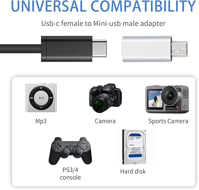 USB 3.1 Type C Mini USBアダプターは、ゲームコントローラー、ラップトップ/タブレット、MP3プレーヤー、PS3コントローラー、MP3プレーヤー、デジタルカメラ、サットナビゲーション、GPSレシーバー、その他のミニUSBポートを備えたデバイスに広く使用されています。