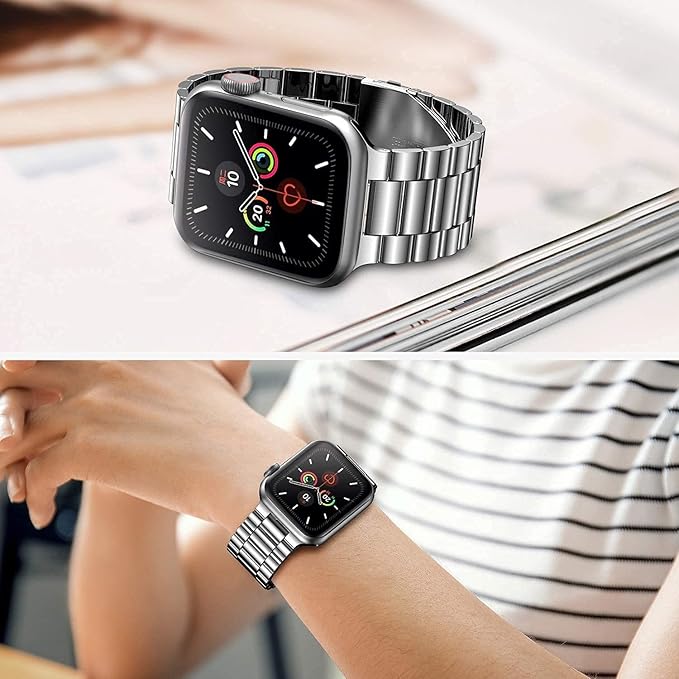 【Apple Watch保護カバー+Apple Watchバンド】Apple Watchにぴったりフィットするケースと交換バンド一体化ステンレスバンドです。ほとんどの時計メーカーで採用されている3連タイプで、金属ブレスとしては一番オーソドックスなタイプになります。横9列になったコマを縦に繋ぎ合わせたブレスレットで、高い堅牢性が特徴です。