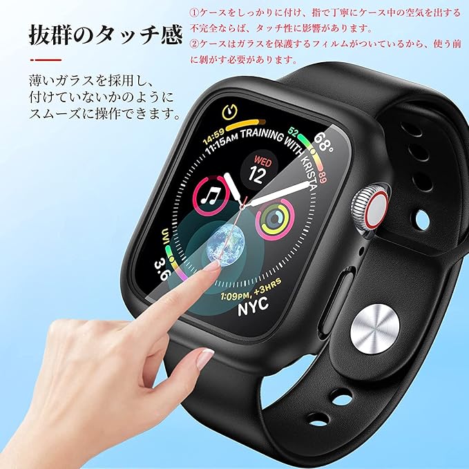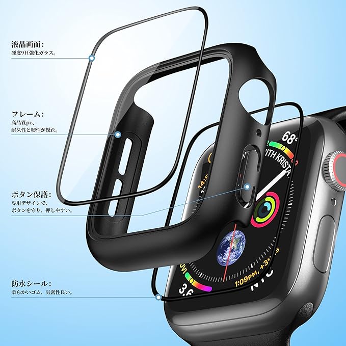 【防水仕様】 今までのアップルウォッチケースを基に改良し、防水機能が向上しました。水深1.2mの水に35分浸すテストでケースの防水効果が最大IP68になります。抜群の防水能力で、アップルウォッチ液晶部と保護ケースの間に水が入り込む心配がございません。手洗い時はもちろん、プールでのワークアウトやキャンプなどのアウトドアでも場所を問わずご使用いただけます。(注意:Apple Watch本来の防水性能を向上させるものではありません。プールや海などの水場でのご使用時はアップルウォッチの説明に従い、スキューバ