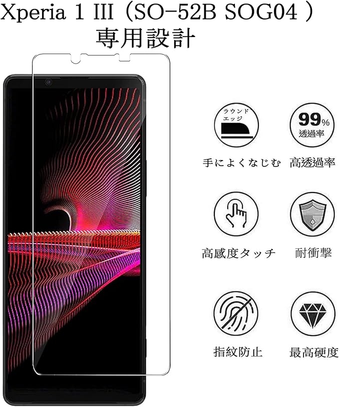 【2枚入り】 Xperia1 III 用 ガラスフィルム SOG03 SO-51B フィルム エクスペリア 1 マーク3 強化ガラス 液晶保護フィルム 【気泡ゼロ/干渉しない/貼り付け簡単】