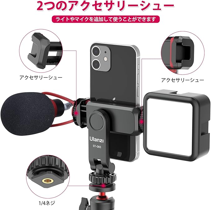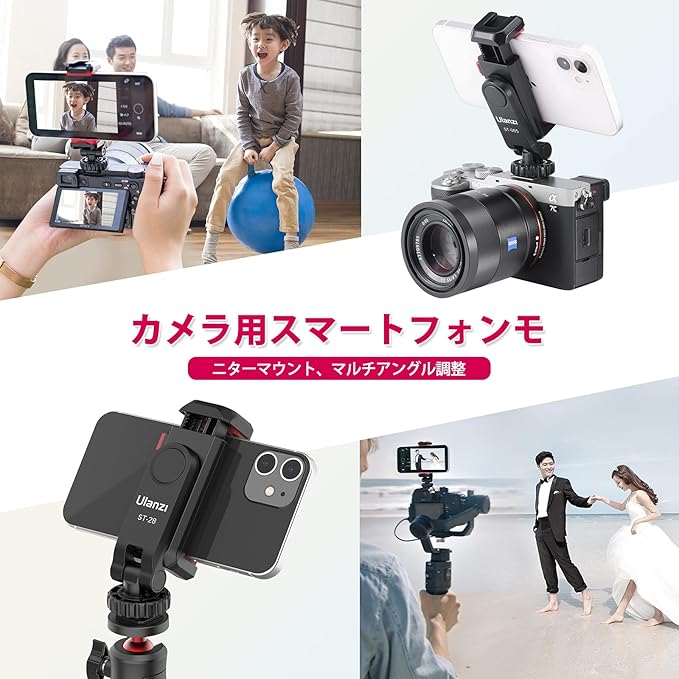 新版 Ulanzi カメマホモニターマウント 360°回転 角度調整 スマホホルダー アクセサシュー付き 垂直ブラケット 1/4ネジ スマートフォン三脚 iPhone/Android/カメラ/一眼レフ/ミス/a7i
