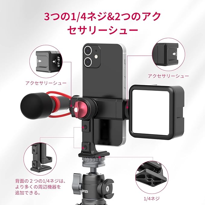Ulanzi ST-27 スマートフォン用三脚アダプター スマート iphone 三脚ホルダー 全金属製 ホットシュー 付き スマホホルダー フォンホルダー スマホ三脚アダプター 三脚 iphoneホルダー ドシ