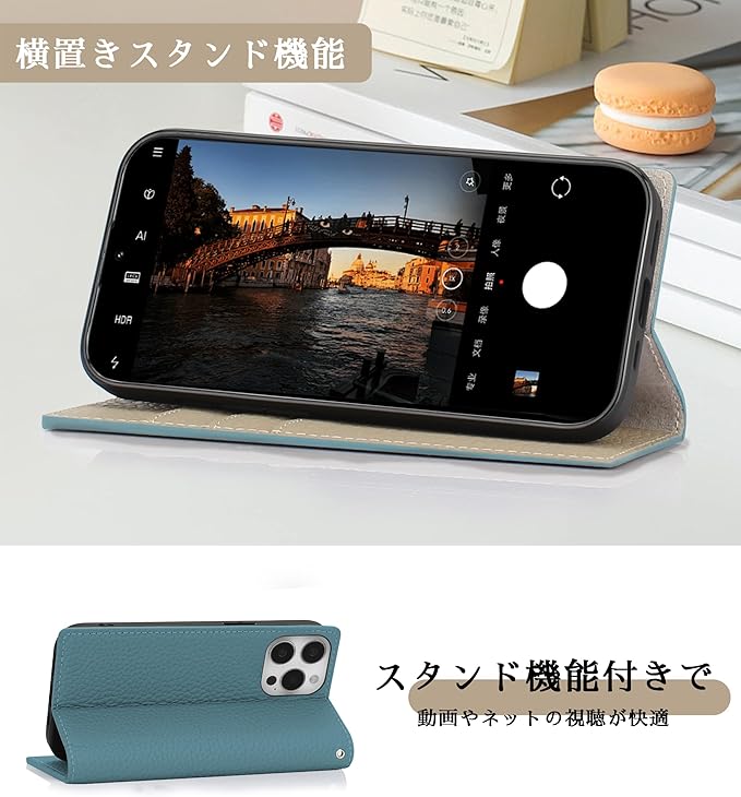 Clicsun iPhone13 Pro ケース 高級牛本革ケース 手帳型 iPhone13 Pro カバー 本革 レザー アイフォン13 Pro カバー スタンド機能 ストラップ付き マグネット式 カードポケット ギフトボックス付き ブル