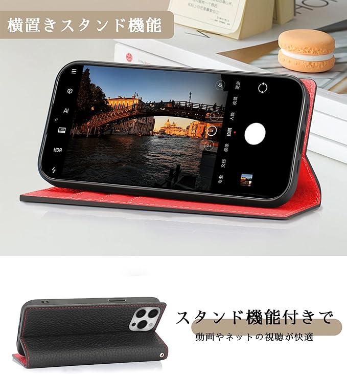 Clicsun iPhone13 ProMax ケース 高級牛本革ケース 手帳型 iPhone13 ProMax カバー 本革 レザー アイフォン13 ProMax カバー スタンド機能 ストラップ付き マグネット式 カードポケット ギフトボックス付