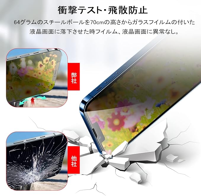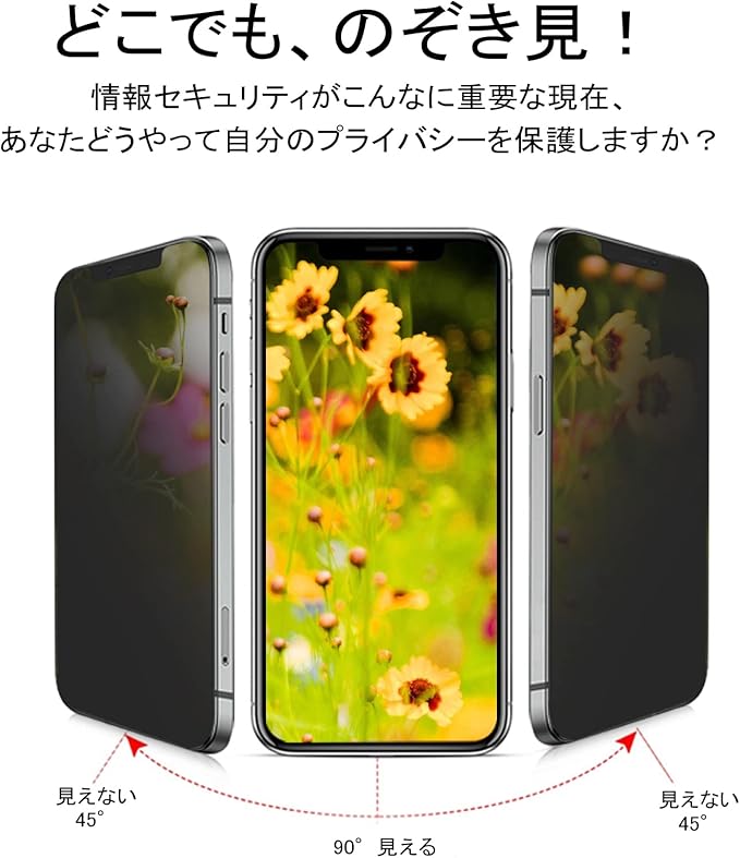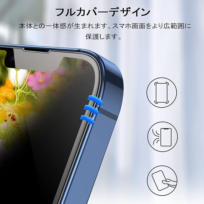 【覗き見防止/2枚セット】iPhone13promax ガラスフィルム iPhone 13promax 強化ガラス 液晶保護フィルム アイフォン13promax プライバシー 保護フィルム 全面保護/指紋防止/傷防止/超薄型/6.7インチ/のぞき見防止