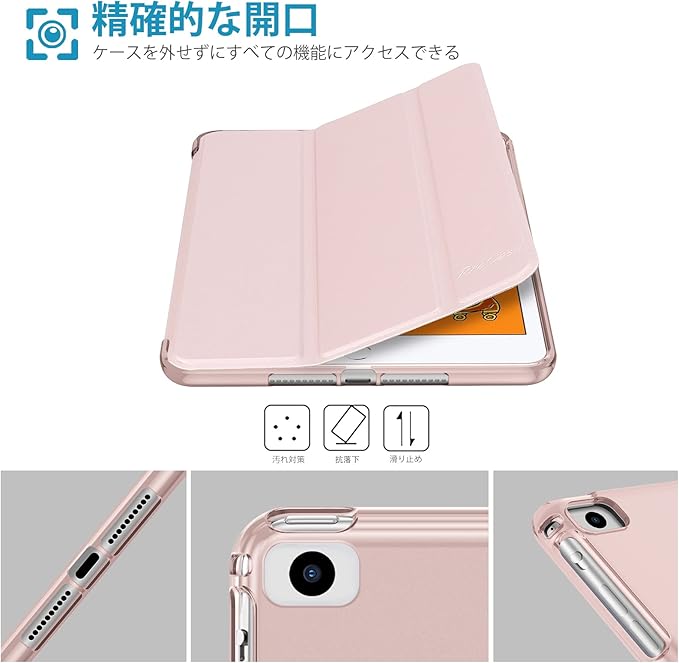 ProCase iPad Mini 5/4/3/2/1 保護ケース 三つ折り フォリオ オートスリープ/ウェイクに対応 TPUバック スマートカバー スタンド機能付き 適用端末:7.9” iPad Mini 5 (2019)/ Mini 4, Mini 1 2 3‐ピンク
