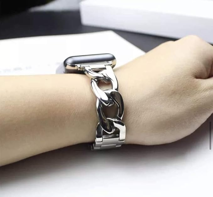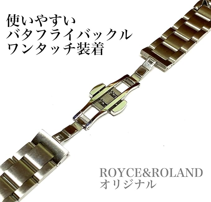 Royce&Roland Apple watch バンドチェーン (バタフライバックル/ステンレス シルバー) 長さ調整 工具不要/アップルウォッチ 時計 鎖 ベルト (40mm 41mm 42mm) レディース メンズ/ギフト プレゼント (Series 10 9 8 7 6 5 4 SE Ultra)