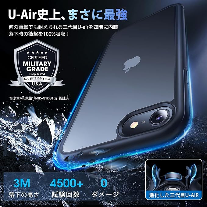 【米軍MIL認証済み・もしもの時も安心】米軍MIL規格「MIL-STD-810G」をクリアした強靭なiPhone SE 用ケース。四隅のAir-Shock5.0と三層の耐衝撃構造により、3.85mの高さから5500回、36方向でアスファルトや砂利に落下させてもスマホ本体は無傷!日常使いから旅行まで、どんなシーンでも安心して使える。【365日安心保証】12時間以内に対応、安心してご購入ください!(購入履歴→購入商品→販売者→質問からご連絡ください)米軍MIL認証番号:GZMR22070223770