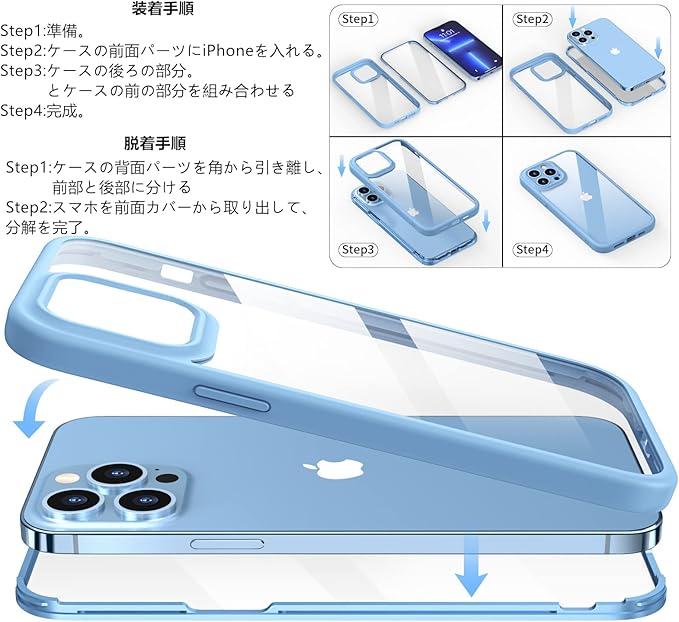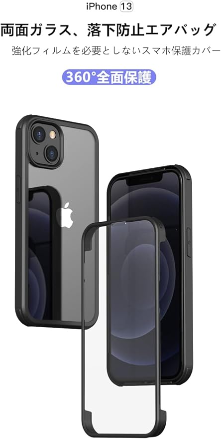 【完全的に全面保護】:マグネット式と違い、角の部分には爪による、両面パーツをしっかりと固定され、高場所から落として、ケースは分離しません。外側のフレームは柔軟なシリコン素材で、落下時に衝撃が吸収できます。また、背面は透明な9H強化ガラスのプレートで、アイフォンの背面デザインも綺麗に確認できます。