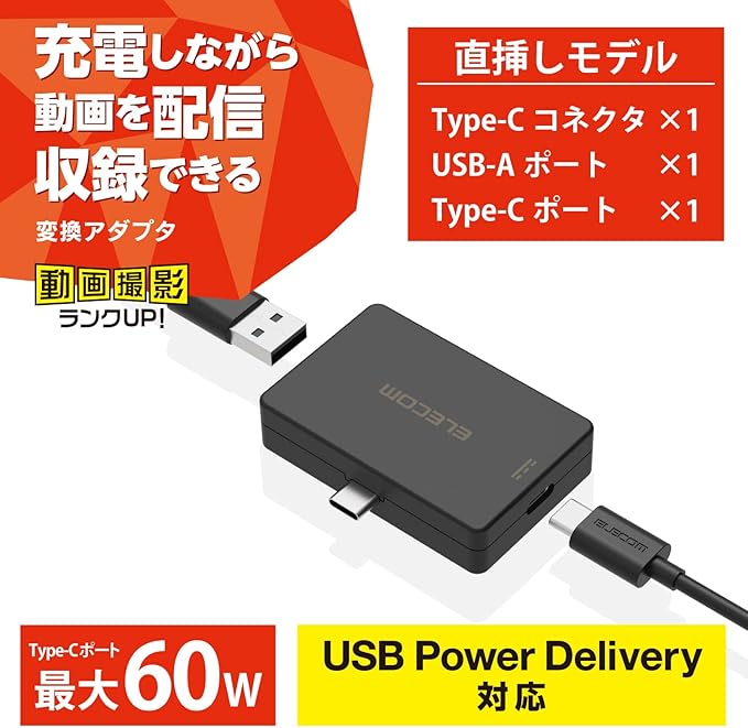 充電しながら長時間の動画撮影や配信ができるUSB Type-C(TM)(TM)変換アダプターです。
