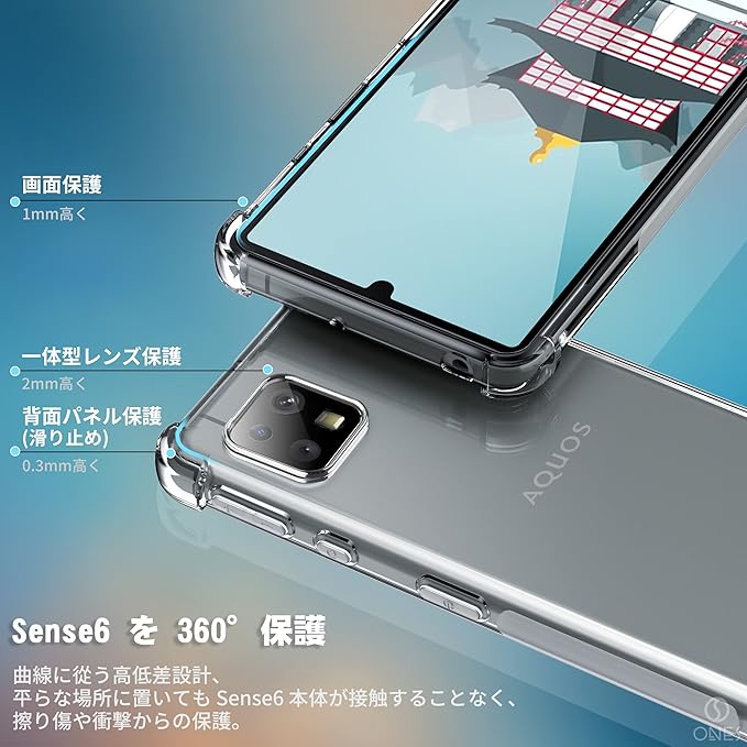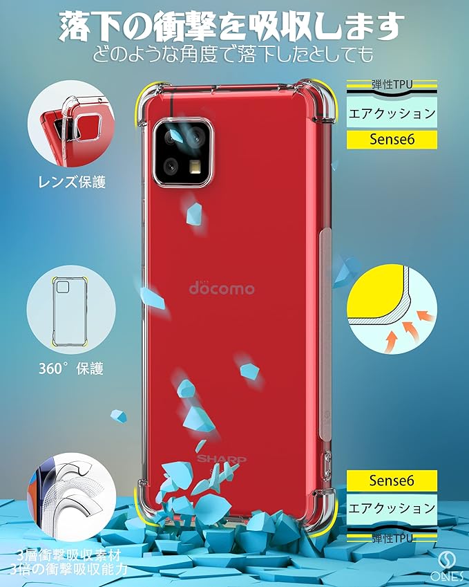 ONES Sense6 / Sense6s ケース HD全透明 米軍MIL規格 超耐衝撃 『 360 エアバッグ、滑り止めマットバンパー 』〔 画面 レンズ保護、ストラップホール 〕薄型 超軽量 衝撃吸収 HQ TPU クリア AQUOS カバー …