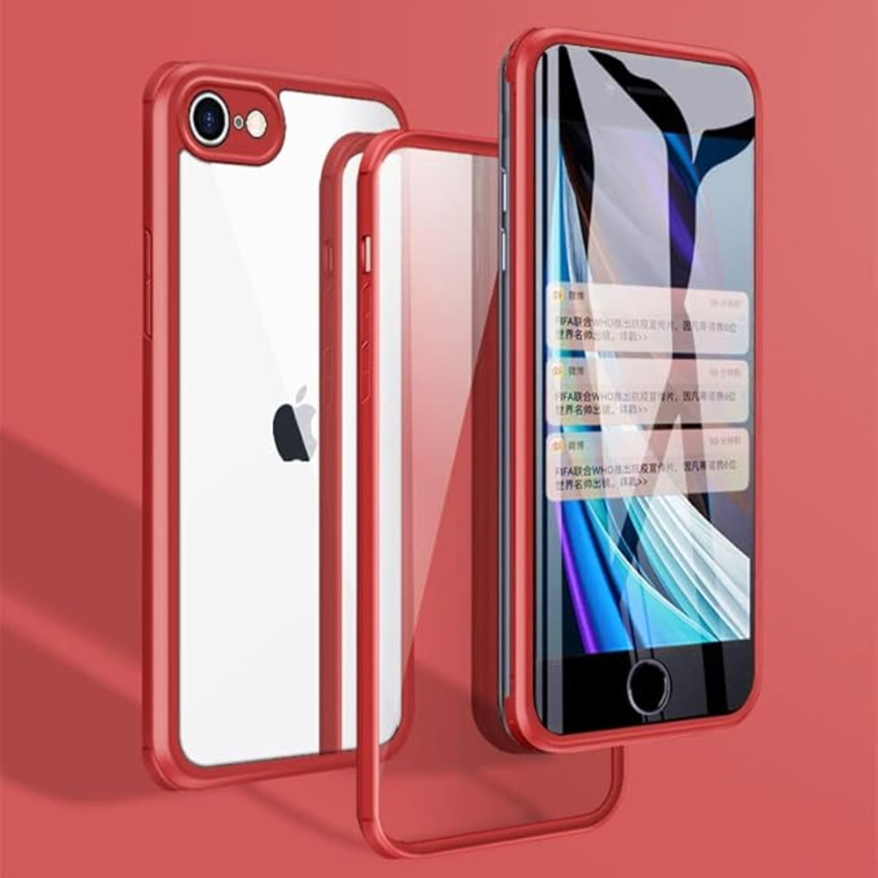 MQman iPhoneSE3 第3世代 ケース iPhone7 iPhone8 iPhoneSE 第2世代 ケース 前面ガラス+背面ガラス 360 全面保護 100%画面タッチ感度 耐衝撃 強化ガラス フロント+バックプレート 軽量 ワイヤレス充電対応 前後 両面 カバー (iphone7/8/se2/se3用, 真っ赤)