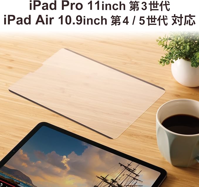 動画視聴の際などに取り外して使える、iPad Pro 11インチ (第4世代)(2022年モデル)、iPad Air (第5世代)(2022年モデル)、iPad Pro 11インチ (第3世代)(2021年モデル)、iPad Air (第4世代)(2020年モデル)、iPad Pro 11インチ (第2世代)(2020年モデル)、iPad Pro 11インチ (2018年モデル)用着脱式、紙心地、指紋防止、反射防止タイプです。