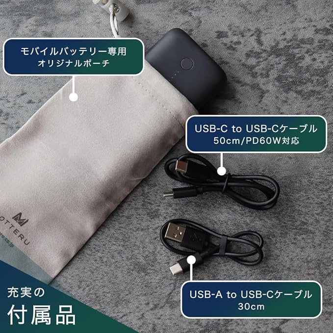 MOTTERU(モッテル) モバイルバッテリー 20000mAh 大容量 PD60W 出力 PD30W 入力 ノートPC サブバッテリー MacBook Pro iPad iPhone16e 16 15 Android Windows PC 各種対応 PPS対応 USB-C入出力 USB-A出力 低電流モード搭載 PSE対応 電熱ベスト対応 ラテグレージュ MOT-MB20001-GY