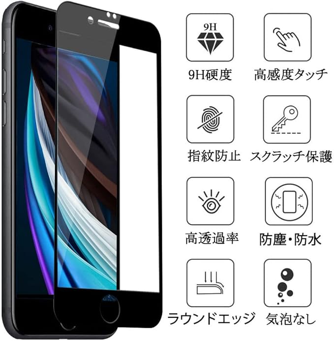 iPhoneSE3/SE2ガラスフィルム 【全面保護】 iPhonese2 フィルム アイフォンSE3 保護フィルム あいふおんse3 ガラス se2 液晶保護 SE 2022 画面保護シート 浮きなし/秒で貼り付け/高透過率で/指紋軽減/フィルム