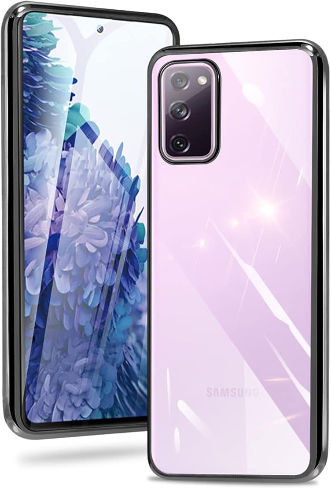 Galaxy S20 ケース クリア 黒 ギャラクシーs20 SC-51A/SCG01 カバー 透明 耐衝撃 スマホケース ソフト 薄型 tpu 背面クリア 黒縁 メッキ加工 ストラップホール付き 軽量 (紫砂ブラック)