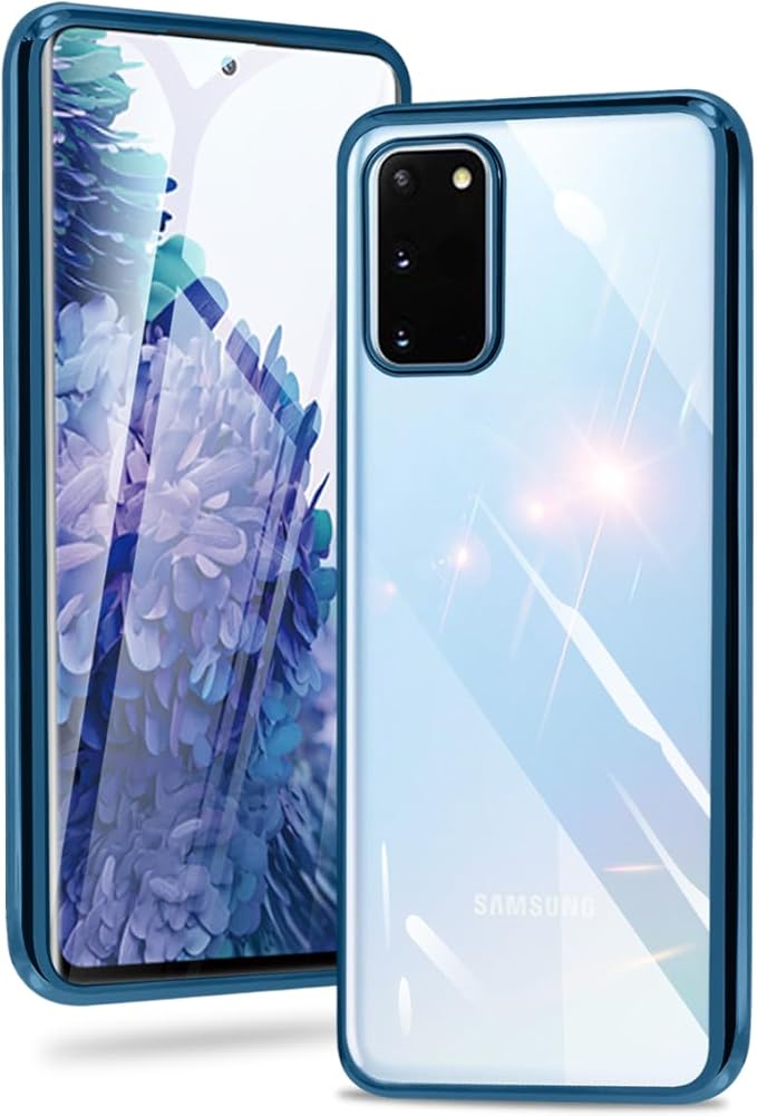 Galaxy S20 ケース クリア 青 ギャラクシーs20 SC-51A/SCG01 カバー 透明 耐衝撃 スマホケース ソフト 薄型 tpu 背面クリア 青縁 メッキ加工 ストラップホール付き 軽量 (ネイビーブルー)