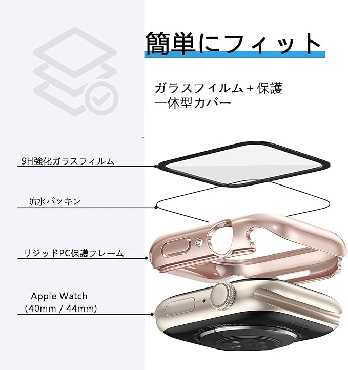 【耐衝撃】 保護PC素材と9H強化ガラス素材で作成されたアップルウォッチ
