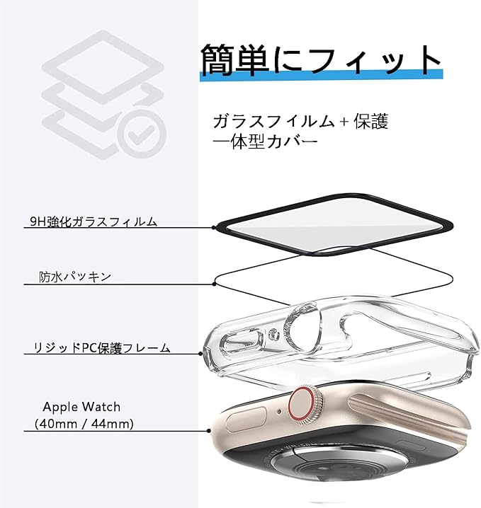 【耐衝撃】 保護PC素材と9H強化ガラス素材で作成されたアップルウォッチ