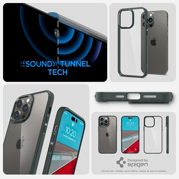 Spigen iPhone14ProMax ケース 衝撃吸収 耐衝撃 ストラップホール付き 米軍MIL規格取得 黄変なし TPU バンパーケース 2重構造 すり傷防止 ワイヤレス充電対応 ウルトラ・ハイブリッド ACS04821 (アビス・グリーン)