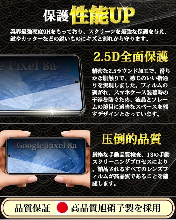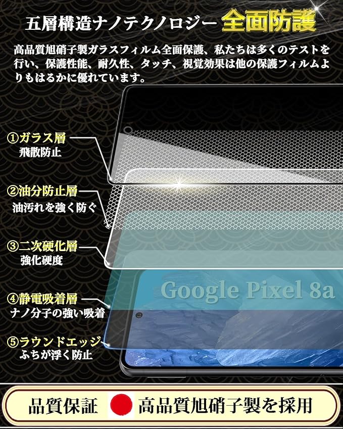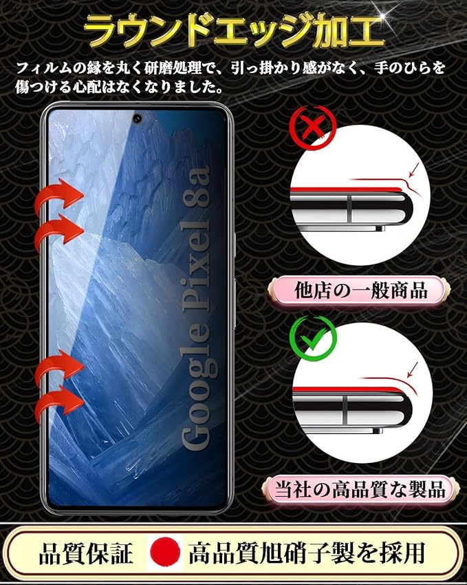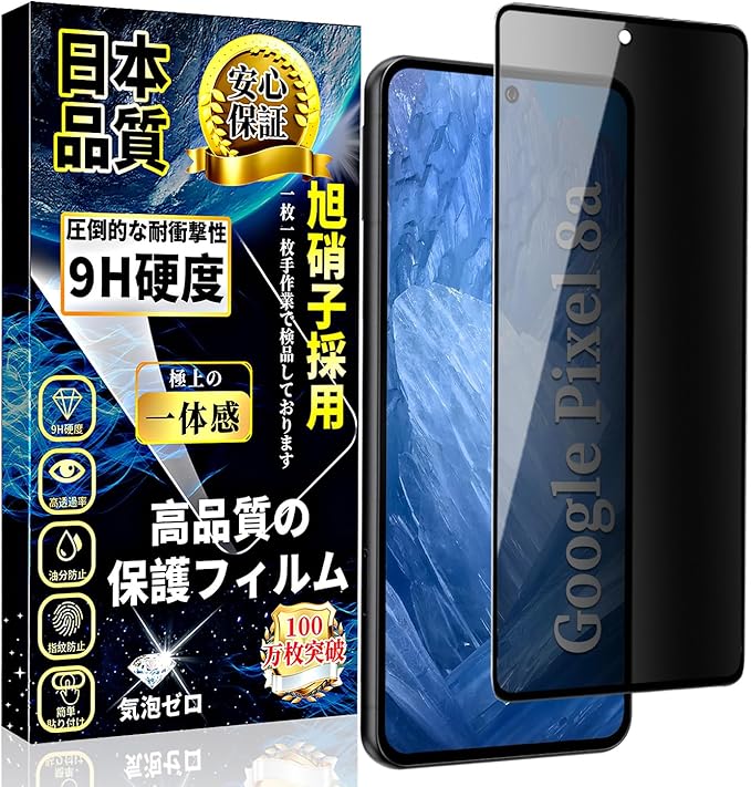 【対応機種!指紋認証なし】Google Pixel8a のぞきみ防止 フィルム 専用設計。ピクセル8a 覗き見防止ガラスフィルム【プライバシーを守り】。ご注意:本製品の覗き見防止反射技術により、指紋認証できない。
