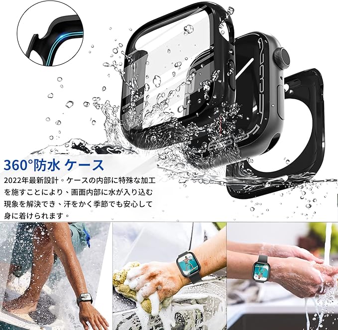 【2重構造、ダブル保護】今までの保護ケースを基に改良し、防水機能が向上しました。耐久性と柔軟性にPC素材+硬度9Hの強化ガラス、背面のハードフレームと組み合わせて、360フルボディ保護、偶発的な落下から時計を保護します。