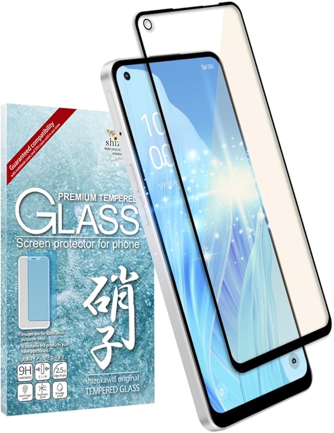 シズカウィル OPPO Reno9 A 用 / Reno7 A 用 ガラスフィルム 強化ガラス 全面保護 保護フィルム フィルム ブルーライトカット 液晶保護フィルム ブラック 1枚入り