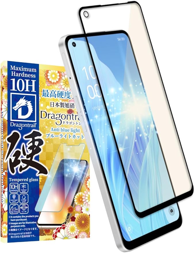 シズカウィル OPPO Reno9 A 用 Reno7 A 用 ガラスフィルム 強化ガラス 保護フィルム フィルム 10Hドラゴントレイル ブルーライトカット 液晶保護フィルム 黒縁 1枚入り