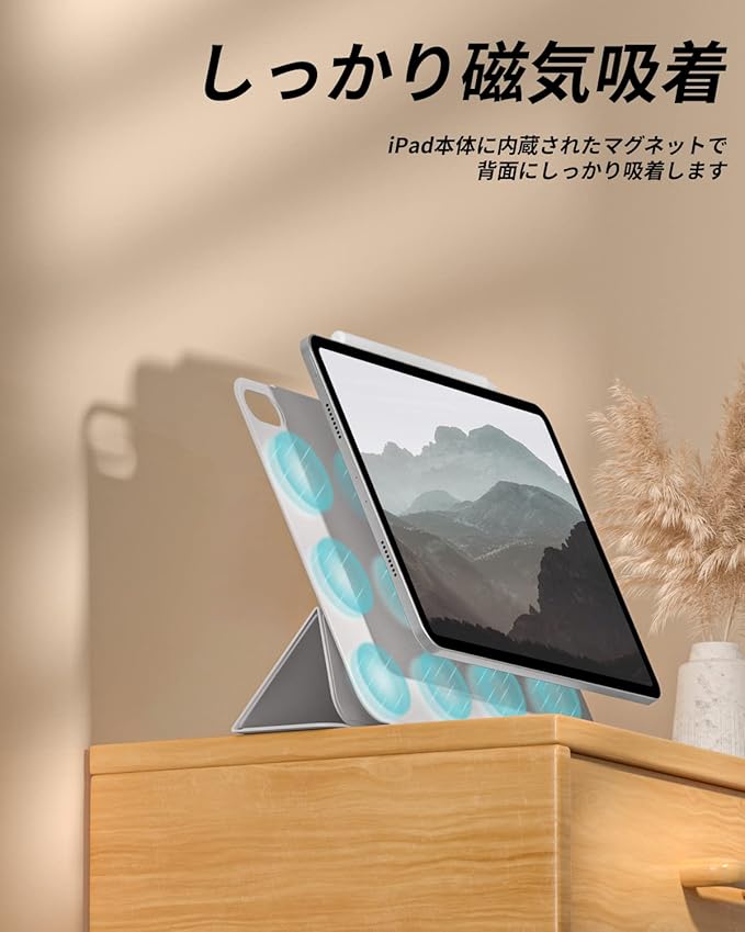Aoub iPad Air 11インチ ケース (M3/M2、2025/2024) iPad Air 第5/4世代 2022/2020 10.9インチ iPad Pro 11 ケース 2018 マグネット 磁気吸着 カバー 三つ折スタンド オートスリープ/ウェイク Pencil Pro/USB-C対応 ペン収納 スリム 手触り快適 グレー
