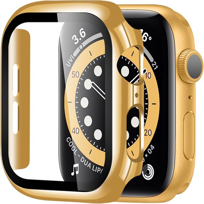 BELIYO Apple Watch ケース 45mm 対応 アップルウォッチ カバー 一体型 光沢式 Apple Watch カバー 全面保護 二重構造 アップルウォッチ ケース PC素材 日本旭硝子材 キズ防止 軽量 強化ガラス Apple Watch Series 9/8/7 アップルウォッチ9/8/7 対応(45mm,ゴールド)