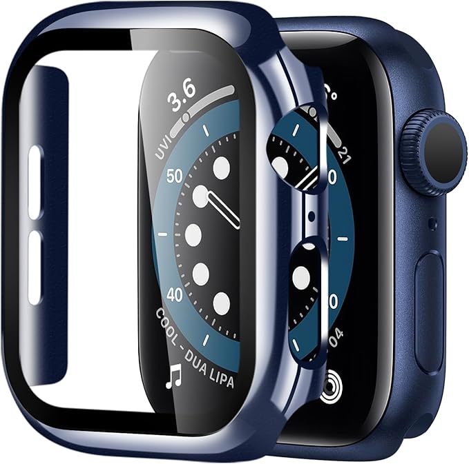 BELIYO Apple Watch ケース 45mm 対応 アップルウォッチ カバー 一体型 光沢式 Apple Watch カバー 全面保護 二重構造 アップルウォッチ ケース PC素材 日本旭硝子材 キズ防止 軽量 強化ガラス Apple Watch Series 9/8/7 アップルウォッチ9/8/7 対応(45mm,ブルー)