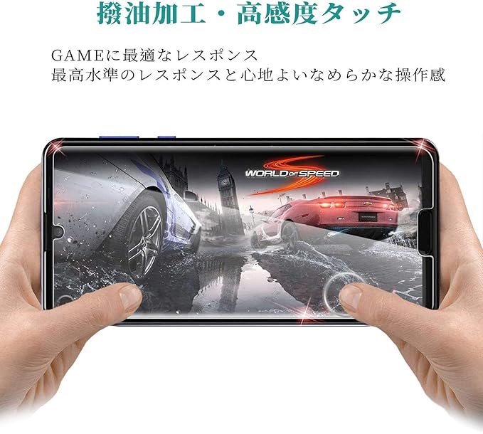 『 高透過率・高感度タッチ 』高透過率を持つ極薄ガラスフィルムに高耐久撥油コーティングが施され、R5G(SHG01 SH-