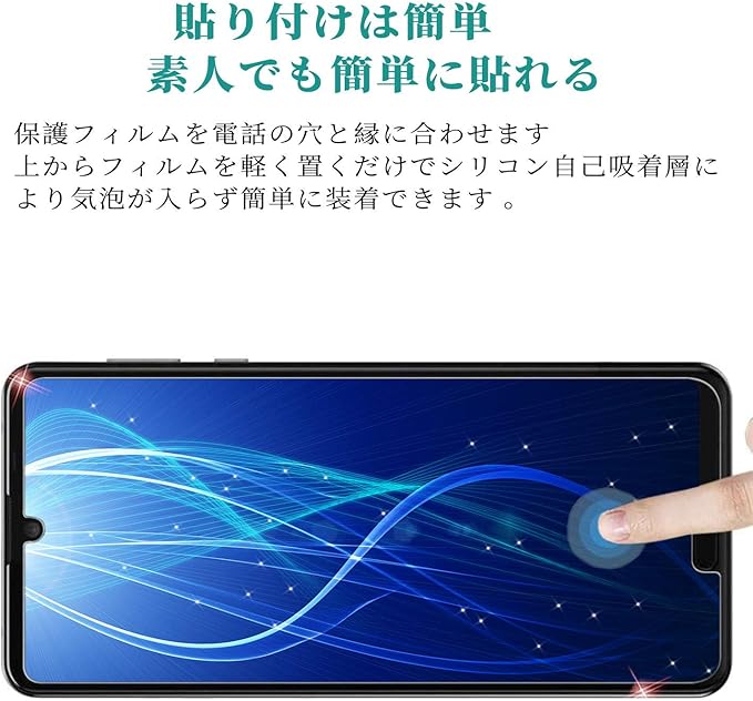 『 貼り付けは簡単・自動吸着 』R5G(SHG01 SH-51A 908SH) ガラスフィルムのシリコン自己吸着層により、位置を合わせて上から軽く置くだけで気泡が入ることなく簡単に装着できます。