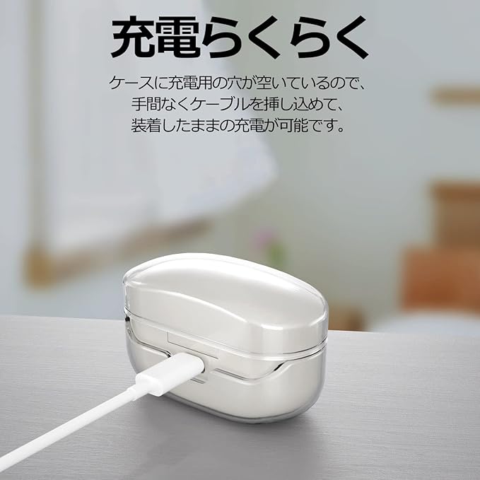 「充電らくらく」ケースに充電用の穴が空いているので、手間なくケーブルを挿し込めて、装着したままの充電が可能です。