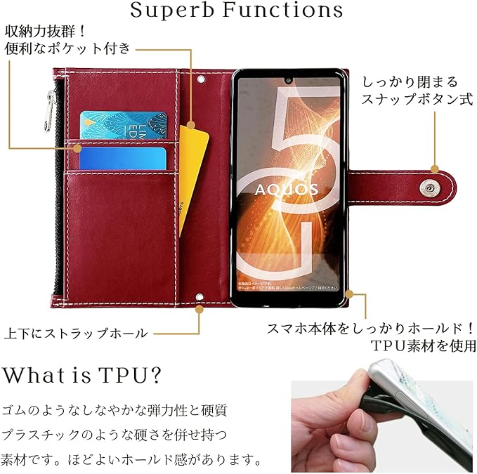 【シンプルスマホ6 A201SH 専用 手帳型ケース】内側が黒TPUで本体をカバーしております。手帳本体は職人により一つ一つ手作りで作成しております。ケースの留め金具はスナップボタンとなっており、しっかりと留めることが出来ます。