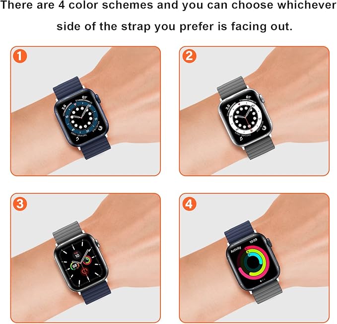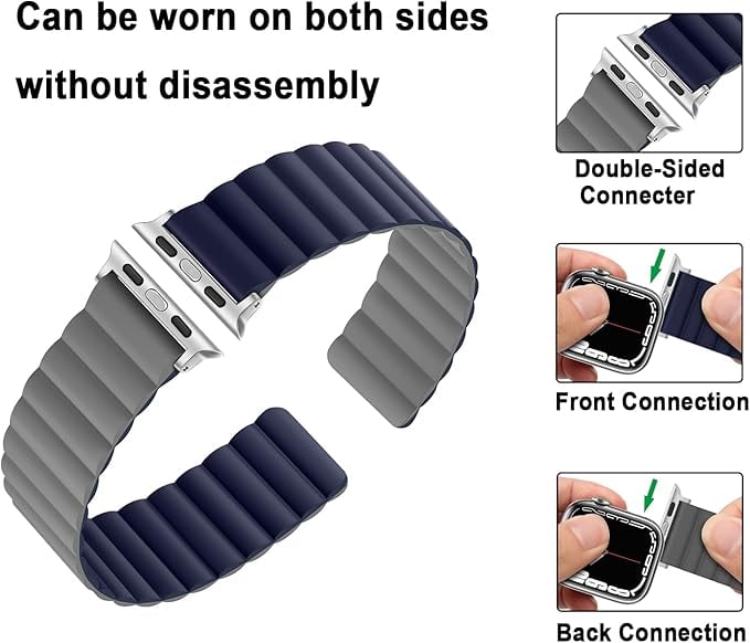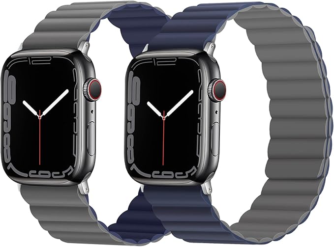 Anlinser コンパチブル Apple Watch バンド42mm 41mm 40mm 38mm、磁気両面リバーシブルアップルウォッチバンド シリーズ10/9/8/7/6/5/4/3/SE 用(ダークブルー/グレー)