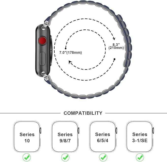【全機種対応】Anlinser 交換用ストラップは互換性がありますApple Watch シリーズ10、シリーズ9、シリーズ8、シリーズ 7、シリーズ 6 シリーズ 5 シリーズ 4 シリーズ 3 シリーズ 2 シリーズ 1 SE 42mm 41mm 40mm 38mm 全モデル、7.0 インチから 8.1 インチ (178mm-206mm) までの手首に適しています